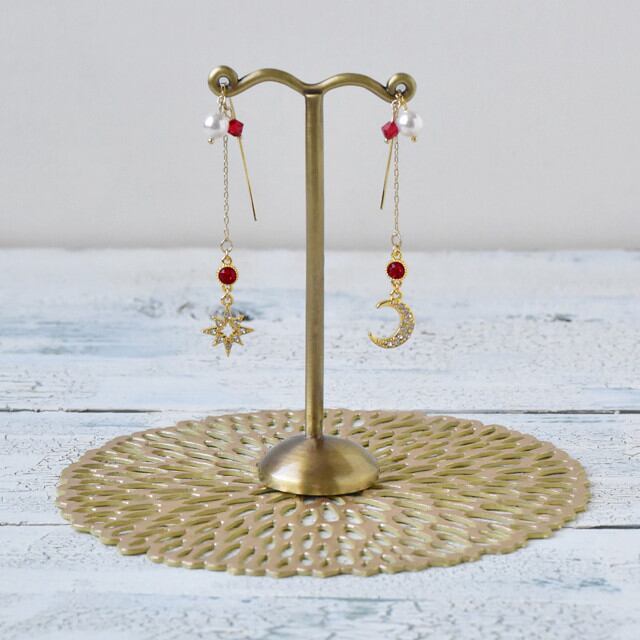 パールやスワロフスキー、月と星のアシンメトリーなモチーフが、夜空に煌めく天の川のように、キラキラと自由に輝きを放ちます。